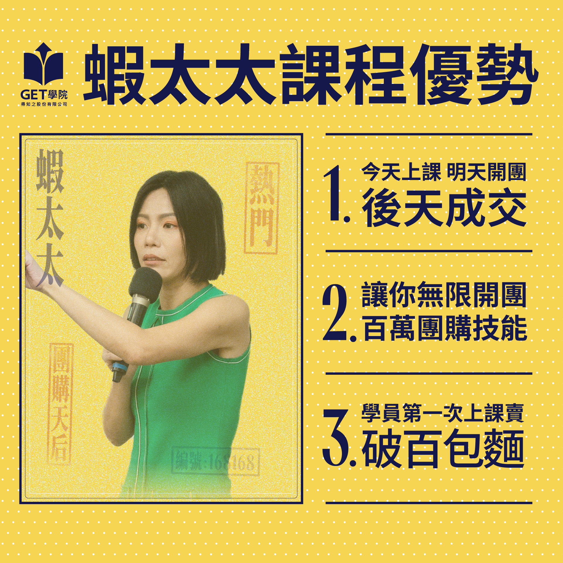 蝦太太獨家團購教學課程,保證課程上完課可以賺回學費的團購課程